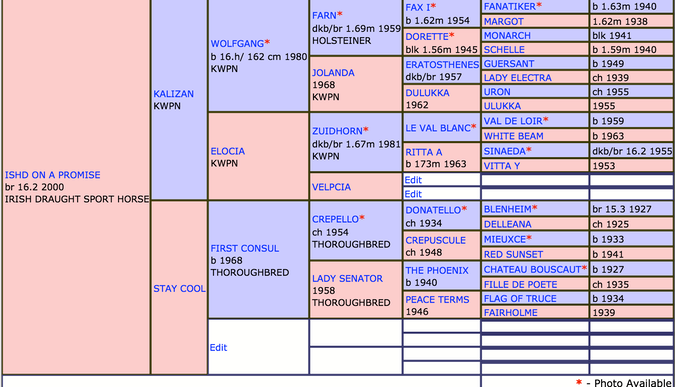 By Kalizan (Bay, born 1992 height 166cm) a Grand Prix Show Jumper now in USA, out of Stay Cool a Grade A Irish Show Jumper mare, who proved to be an incredibly talented speed horse.
